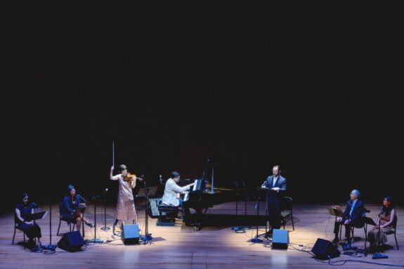 On the final night of Lincoln Center’s RUN AMOC Festival, Anthony Cheung addressed the audience from his place at the piano, expressing feelings of kinship with the American Modern Opera Company (AMOC) although he himself is not a member. Seated on either side of him were two longtime members of the company, violinist Miranda Cuckson and tenor Paul Appleby, and flanking them were guest poets from the world of Asian-American literature: Victoria Chang, Arthur Sze, Jenny Xie and Monica Youn.