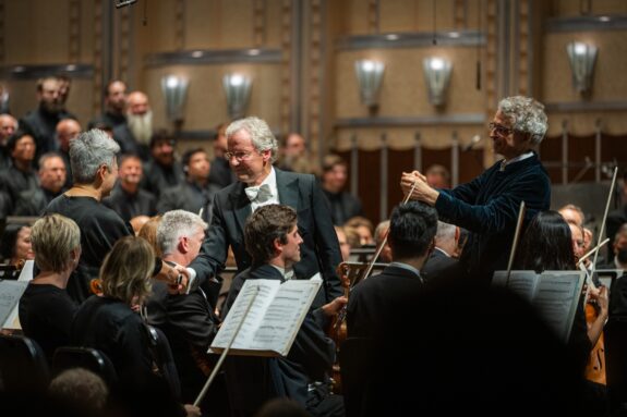 The first part of that triple constellation ended up being a lot larger than even Welser-Möst expected. In an onstage, pre-concert, season-preview interview with orchestra president André Gremillet, Welser-Möst said that when he co-commissioned a new work from composer Bernd Richard Deutsch for chorus and orchestra, he assumed Deutsch would deliver a twenty-to-twenty-five-minute piece. Instead, Urworte (Primal Words) runs close to an hour and feels conceptually even larger.
