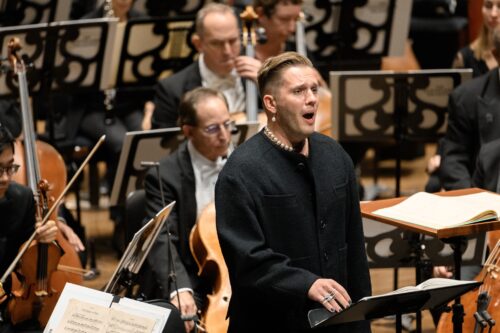 Samoilov has the vocal heft and handsome strength to match Fischer-Dieskau in the declamatory parts of the medium-voice songs, but he also delivered many passages with a melting tenderness that Fischer-Dieskau could only dream of. Part of this creative breakthrough came from Samoilov’s willingness to break old social norms of masculine deportment. The medium-voice songs, particularly the epic closing ‘Der Abschied’ – as long as the other five movements combined – require levels of vulnerability that past baritones have simply been too afraid to unleash. Samoilov has such confidence in his supple voice and so much knowledge of how to effectively deploy it that he had no fear in showing vulnerability. He topped off that challenge to masculine bravado by accenting his skatepunk-chic couture with a strand of pearls and an earring, and he still came across as both virile and vulnerable. Until this performance, I largely dismissed the baritone option, but no more: Samoilov proved the baritone version can match the mezzo-soprano one.