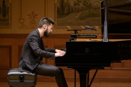 Pianist Vikingur Ólafsson takes a bow at Zellerbach Hall © Kristen Loken