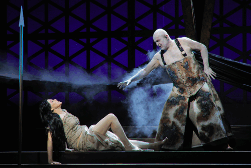 Klingsor (Falk Struckmann) reprimands Kundry (Tanja Ariane Baumgartner) in SFO’s Parsifal © Cory Weaver