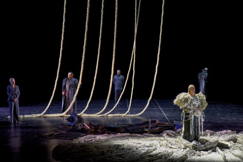 Tristan und Isolde Act I: [l-r] Ekaterina Gubanova (Brangäne), Andreas Schager (Tristan), Jordan Shanahan (Kurwenal), Camilla Nylund (Isolde) and Günther Groissböck (King Marke) © Bayreuther Festspiele/Enrico Nawrath